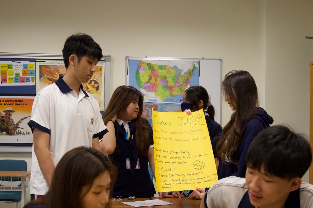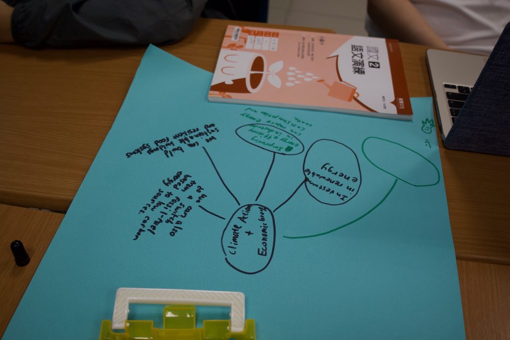 Students broke into 4 mixed-nationality groups to discuss realistic solutions that could promote both sustainable development and economic prosperity. All of our club members had enjoyed the communication and discussion between them when brainstorming solutions. The creativity and critical thinking were evident in every poster and pitch: